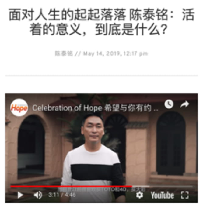Two twin projects are in the pipeline: Stories of Hope, an outreach portal built to publish and amplify evangelistic testimonies on digital/social media, and the Chinese equivalent, 爱足迹 (Ai Zu Ji, roughly translated as the way of love).Â